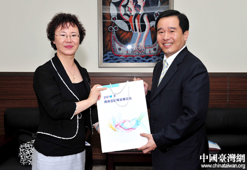 中國(guó)臺(tái)灣網(wǎng)與臺(tái)視互贈(zèng)紀(jì)念禮物。(中國(guó)臺(tái)灣網(wǎng) 發(fā))