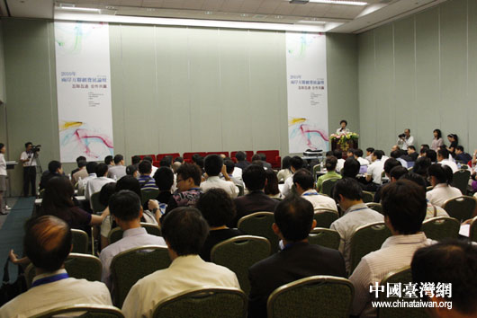 以“互聯(lián)互通,合作共贏”為主題的2010兩岸互聯(lián)網(wǎng)發(fā)展論壇今天上午在臺(tái)北國(guó)際會(huì)議中心隆重開(kāi)幕。(中國(guó)臺(tái)灣網(wǎng) 李桂英 攝)