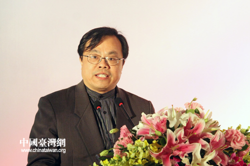 2011年兩岸互聯網發展論壇在北京召開,臺北市電腦商業同業公會副總干事黃鋆鋇發表致辭。(中國臺灣網 于斯文 攝)