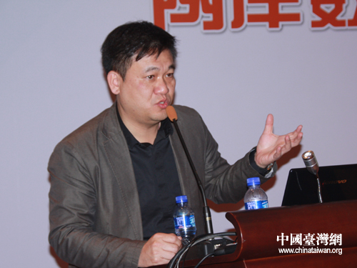 麗禾國際執(zhí)行董事黃啟誠在兩岸數(shù)字內(nèi)容及產(chǎn)業(yè)孵化論壇上作主題演講(中國臺(tái)灣網(wǎng) 高斯斯 攝)