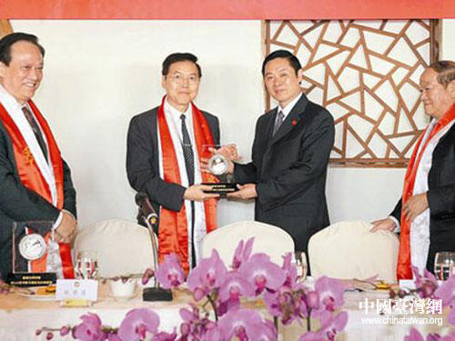劉奇葆(右二)出席四川省感謝臺(tái)灣社會(huì)各界援助“5·12”地震災(zāi)區(qū)見面會(huì),向臺(tái)灣救援隊(duì)、醫(yī)療隊(duì)、志愿者、援建單位代表和新聞單位的朋友贈(zèng)送抗震救災(zāi)紀(jì)念章。圖片來源:四川省臺(tái)辦