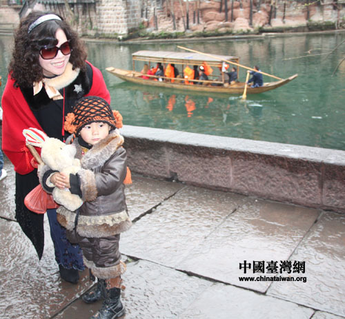 中國(guó)臺(tái)灣網(wǎng)2月27日湖南鳳凰消息 臺(tái)南市地方民意代表來(lái)湘參訪團(tuán)今天游覽了風(fēng)景優(yōu)美的鳳凰古城,近40位來(lái)自臺(tái)南的民意代表、里長(zhǎng)泛舟沱江,感受鳳凰古樸靈秀的自然風(fēng)光,并訪問(wèn)了城內(nèi)沈從文故居、熊希齡故居及歷史博物館等人文景觀,體驗(yàn)濃郁的湘西風(fēng)情。