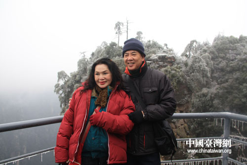 中國臺灣網(wǎng)2月28日消息 昨天,來湖南參訪的近40位臺南市地方民意代表、里長走進清溪潺潺、奇峰聳立的張家界旅游風景區(qū),游覽黃龍洞和武陵源風景區(qū),26日晚上,正值雨季的張家界適逢一場較大的雨雪,昨天武陵源內(nèi)海拔稍高的地方出現(xiàn)了銀裝素裹的霧凇奇觀,引起來自寶島的客人驚嘆。