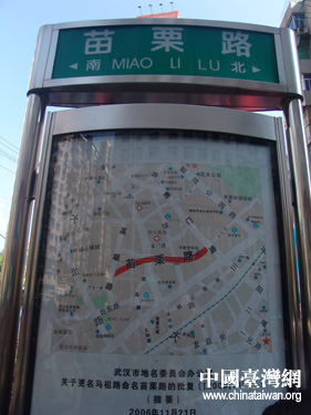 為促進漢臺兩地的文化交流,加深對漢臺兩地的地域了解,繼臺北路、高雄路、云林路、馬祖路之后,武漢市區(qū)又一條以臺灣縣市名稱命名的苗栗路8日上午在江岸區(qū)開街。