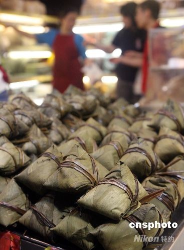 端午節(jié)前夕,香港銅鑼灣一街市粽子熱銷。 中新社發(fā) 武仲林 攝