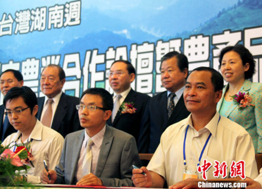 湖南省農(nóng)業(yè)產(chǎn)業(yè)協(xié)會(huì)、湖南省供銷合作總社與臺(tái)灣方面的“中國(guó)海峽兩岸農(nóng)業(yè)協(xié)會(huì)”、臺(tái)南縣農(nóng)會(huì)6日上午在此間舉辦的農(nóng)業(yè)合作論壇及農(nóng)產(chǎn)采購(gòu)信息發(fā)布,是“2010年臺(tái)灣湖南周”的重要一環(huán)。除產(chǎn)品采購(gòu),兩地企業(yè)家還簽署了3項(xiàng)臺(tái)灣農(nóng)產(chǎn)品開(kāi)拓湖南市場(chǎng)戰(zhàn)略合作框架協(xié)議。