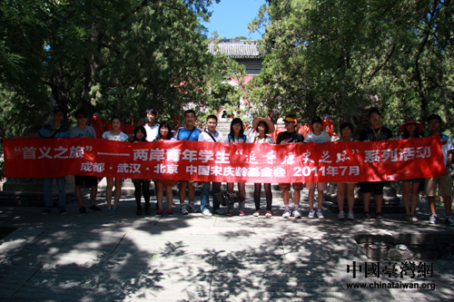 兩岸青年學子在碧云寺合影留念。(中國臺灣網 張維佳 攝)