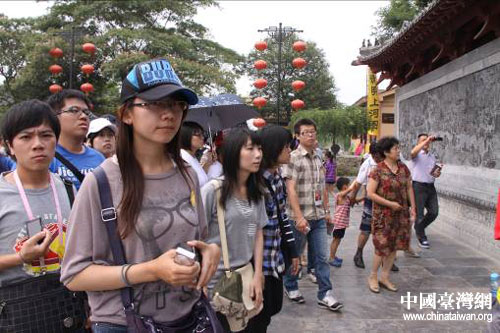 中國臺灣網7月18日開封消息 17日,參加豫臺兩地大學生研習營活動的臺灣大學生們來到七朝古都開封,參觀清明上河園。