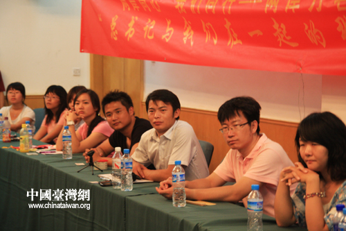 中國臺灣網7月13日北京消息 今天下午,作為兩岸萬名青年大型交流活動之一的兩岸青年學生“追尋歷史的足跡”參訪團在北京大學進行參觀交流活動,并舉行“總書記與我們在一起的那一刻”主題座談會,展開熱烈討論。胡錦濤總書記的和藹可親、平易近人,給兩岸青年學子們留下了深刻印象。