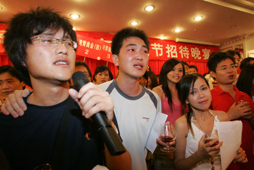 中國(guó)臺(tái)灣網(wǎng)06年8月9日廈門消息 “遙遠(yuǎn)的東方有一條龍,它的名字就叫中國(guó)……”,“難忘今宵、難忘今宵……共祝愿祖國(guó)好、祖國(guó)好……”,“朋友一生一起走……一句話,一輩子,一生情,一杯酒”,“當(dāng)你踏上月臺(tái)、從此一個(gè)人走……深深的祝福你,我親愛的朋友,祝你一路順風(fēng)”……這些耳熟能詳?shù)母枨谧蛲淼氖讓脙砂肚嗄曷?lián)歡節(jié)招待晚宴上被一一唱響。