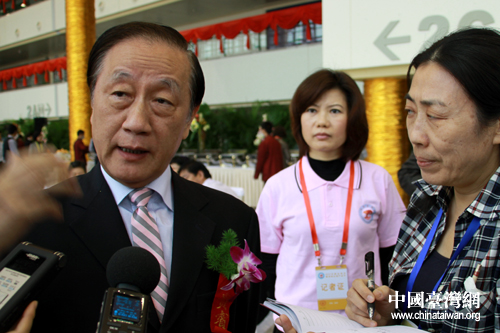 郁慕明接受采訪。(中國臺灣網 董潔 攝)