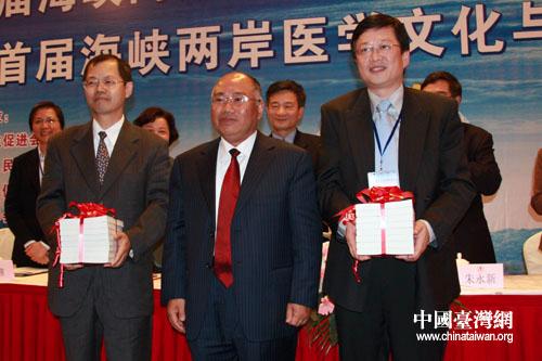 閉幕式上臺(tái)灣亞洲大學(xué)教授劉見(jiàn)祥,香港中文大學(xué)心理系教授陳瑞燕,澳門醫(yī)務(wù)界聯(lián)合總會(huì)會(huì)長(zhǎng)李安定,浙江中醫(yī)藥大學(xué)副校長(zhǎng)連建偉分別代表兩岸四地醫(yī)學(xué)界專家學(xué)者發(fā)表與會(huì)感言。他們從不同的角度闡述了參與論壇的收獲,對(duì)進(jìn)一步加強(qiáng)兩岸四地醫(yī)學(xué)文化交流與合作提出了寶貴的意見(jiàn)、建議。連建偉還將自己所著的《<金匱要略方論>講稿》一書(shū)贈(zèng)予臺(tái)灣長(zhǎng)庚大學(xué)醫(yī)學(xué)院和臺(tái)灣中山醫(yī)學(xué)大學(xué)。