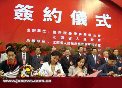大會簽約項目92個,臺商投資金額10.1億美元,較上屆研討會增長30.2%,簽約臺資項目主要涉及電子及元器件、信息通訊、機械制造、汽車配件、紡織服裝及旅游等行業,較大項目有:臺灣詠昌企業集團增資南昌富昌科技有限公司2000萬美元生產電腦芯片項目,臺灣天元股份有限公司在九江開發區投資1500萬美元生產集裝箱護板及汽車配件項目,臺灣高效電子股份有限公司在南昌高新區投資1000萬美元生產傳感器、開關電源、變壓器項目,新加坡旺旺控股有限公司投資1000萬美元新建江西大旺食品有限公司等。 |