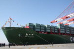 兩岸海運直航最大噸級貨柜輪抵達臺灣高雄港