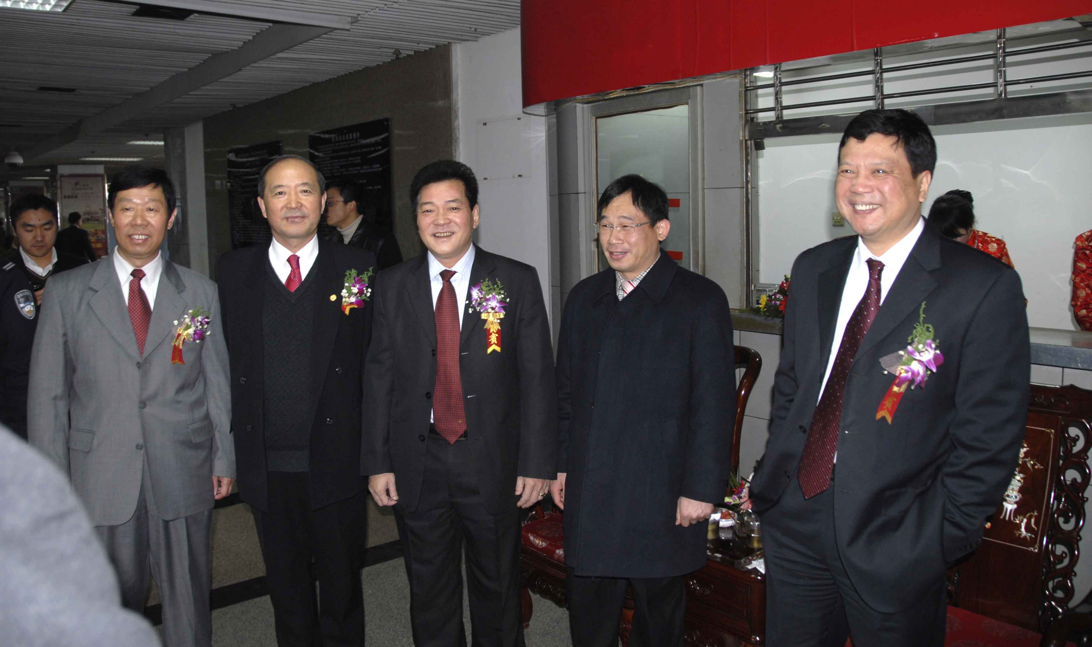 湖北省李鴻忠省長、田承忠副省長、武漢市阮成發市長、全國臺企聯何世忠常務副會長、中國東方航空集團公司陳海鞠副總裁為首航儀式剪彩 攝影:嚴越培