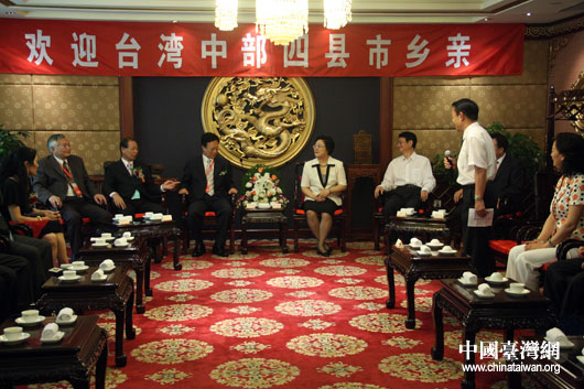 6月27日,全國政協(xié)副主席、臺盟中央主席林文漪在京會見了前來出席“臺灣中部四縣市農(nóng)特產(chǎn)品暨觀光展覽”的四縣市負(fù)責(zé)人一行。(中國臺灣網(wǎng) 鐘寶華 攝)
