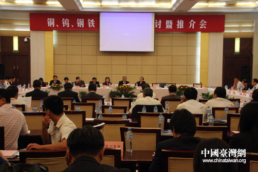9月21日上午,由國務(wù)院臺辦和江西省政府共同主辦的“2009贛臺經(jīng)貿(mào)合作研討會”在南昌開幕。開幕后,兩岸工商企業(yè)代表就有關(guān)投資合作項目及協(xié)議現(xiàn)場簽約,隨后,江西省七個專題的研討暨項目推介會同時展開。圖為銅、鎢、鋼鐵產(chǎn)業(yè)專題研討會暨推薦會現(xiàn)場。(中國臺灣網(wǎng) 鐘寶華 攝)