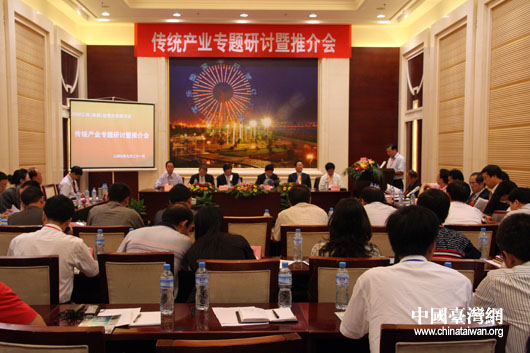 9月21日上午,由國務(wù)院臺辦和江西省政府共同主辦的“2009贛臺經(jīng)貿(mào)合作研討會”在南昌開幕。開幕后,兩岸工商企業(yè)代表就有關(guān)投資合作項目及協(xié)議現(xiàn)場簽約,隨后,江西省七個專題的研討暨項目推介會同時展開。圖為傳統(tǒng)產(chǎn)業(yè)專題研討會暨推薦會現(xiàn)場。(中國臺灣網(wǎng) 鐘寶華 攝)