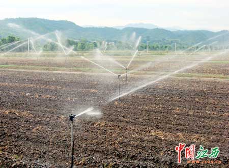 江西金源農業開發公司先進的有機菜場噴灌系統。(來源:中國江西新聞網 攝影:王凱)