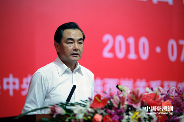 7月11日下午,第六屆兩岸經(jīng)貿(mào)文化論壇在廣州閉幕,中國(guó)國(guó)民黨副主席蔣孝嚴(yán)和中共中央臺(tái)辦主任王毅共同主持閉幕式。圖為中共中央臺(tái)辦主任王毅在閉幕式上對(duì)本屆論壇進(jìn)行小結(jié)。(中國(guó)臺(tái)灣網(wǎng) 鐘寶華 攝)
