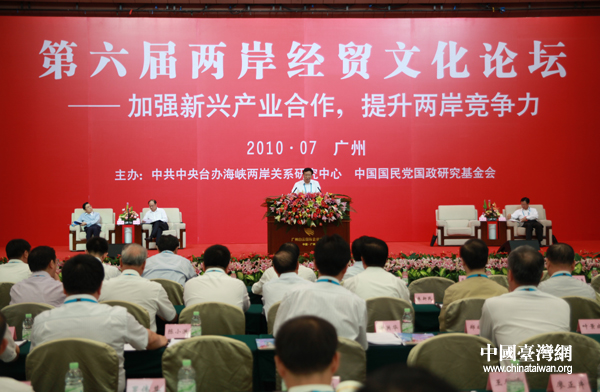 中國臺灣網7月10日廣州消息 第六屆兩岸經貿文化論壇10日上午在廣州開幕。在開幕式后的主題演講環節,兩岸資深專家將目光共同投向兩岸產業合作的新趨勢與新方向。雙方普遍認為:兩岸將未來經濟社會發展的重點均聚焦于新興產業,應該把握機遇,共同推動兩岸新興產業合作進軍全球市場的愿景。