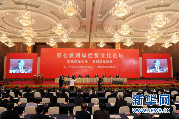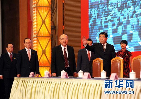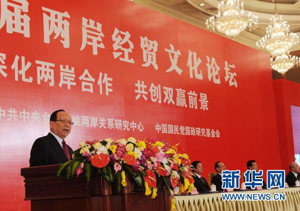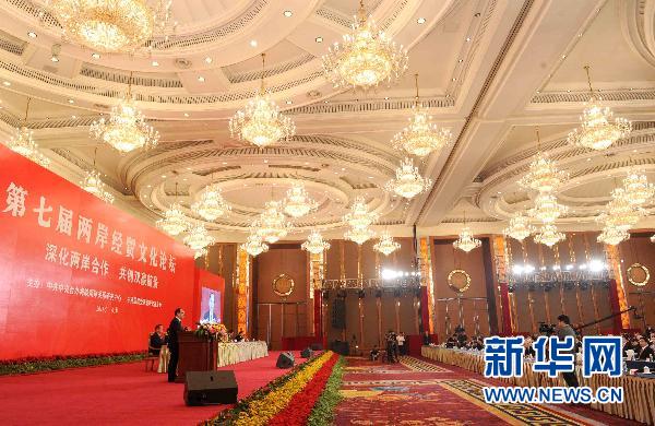 5月8日,第七屆兩岸經貿文化論壇在四川成都閉幕。中共中央政治局常委、全國政協主席賈慶林和中國國民黨榮譽主席吳伯雄出席閉幕會。新華社記者 饒愛民 攝