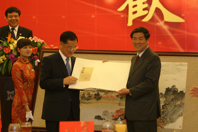 會后,連戰與廈門市政府相互交換禮物,廈門市政府并設宴款待臺灣貴賓。(謝曉萍 徐麗麟)