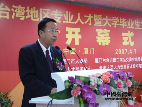 在開幕式上,廈門市政府秘書長蔡壽國表示,去年在廈門舉行的首次臺灣人才招聘會以其雙向、直接的人才交流形式,在海峽兩岸引起了廣泛的反響。在去年的招聘會之后,廈門方面即在廈門人才網(wǎng)上開辟了臺灣人才頻道。他表示,兩岸在市場、人才、技術(shù)、資金方面各有優(yōu)勢,互補性強。不斷加強兩岸的人才交流是發(fā)展兩岸關(guān)系、促進(jìn)共同發(fā)展的客觀要求,也是兩岸同胞的共同愿望。
