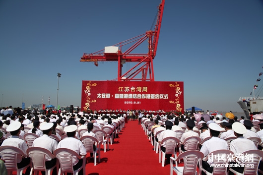 中國臺灣網9月21日太倉消息 9月21日,江蘇太倉港與高雄港締結合作港簽約儀式在太倉港集裝箱碼頭舉行。標志著太倉港與臺灣經濟領域的合作進一步加強。(記者 鐘寶華)