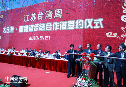 中國臺灣網(wǎng)9月21日江蘇太倉消息 9月21日,江蘇太倉港與高雄港締結(jié)合作港簽約儀式在太倉港集裝箱碼頭舉行。標(biāo)志著蘇臺經(jīng)濟領(lǐng)域的合作進一步加強。海峽兩岸關(guān)系協(xié)會駐會副會長李炳才出席簽約儀式,并與到場貴賓一同為兩港締結(jié)合港作推桿起航。