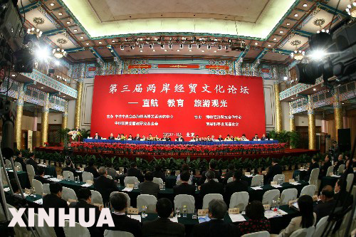 新華網(wǎng)北京4月29日電(記者張勇 陳鍵興 茆雷磊) 備受海內(nèi)外矚目的第三屆兩岸經(jīng)貿(mào)文化論壇28日至29日在北京隆重舉行。這次匯集兩岸各界代表真知灼見(jiàn)的盛會(huì)以直航、旅游、教育為主題,順應(yīng)了兩岸同胞擴(kuò)大交往、加強(qiáng)合作的迫切愿望,符合兩岸互惠互利、共同發(fā)展的現(xiàn)實(shí)需要,形成了惠利民生、造福兩岸的累累碩果。