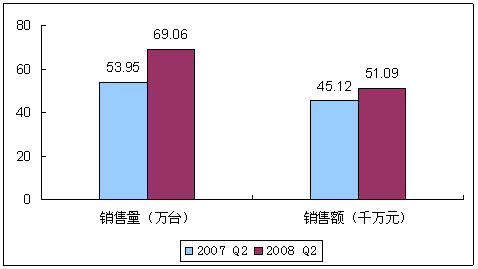 賽迪顧問市場監測數據顯示,2008年Q2中國移動硬盤市場穩中有升,實現總銷量69.06萬臺,與2007年同期相比增長28.0%;實現銷售額5.11億元,同比增長13.2%。