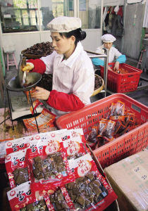 四月二十三日,在沙縣富口鴻光食品廠包裝車間,工人們正在封裝剛出爐的豆干。這家企業(yè)依托沙縣小吃的影響和帶動,采用傳統(tǒng)獨特工藝輔以現(xiàn)代科 技,年產(chǎn)近千噸的“老情人”系列豆干,成功挺進十多個省份的各大超市。據(jù)悉,沙縣小吃業(yè)蓬勃發(fā)展,有力拉動土特產(chǎn)業(yè)的興盛,目前全縣已發(fā)展土特產(chǎn)生產(chǎn)企業(yè)四十多家,其產(chǎn)品隨小吃從業(yè)大軍銷往全國各地。(三明日報 羅邦銘 管柳英)