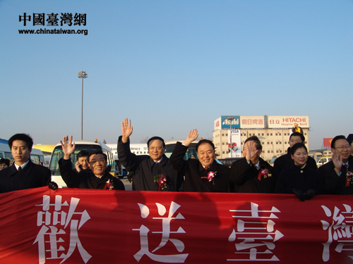 國臺辦北京市民航總局等各級領導“歡送臺灣同胞回家過年” 中國臺灣網1月25日消息 06年兩岸春節包機國航首航儀式在北京首都機場舉行。乘坐首航班機的眾多臺胞手持機票,陸續登上了回家過年的國航飛機。國臺辦、北京市、民航總局等多位領導滿懷深情送別回家臺胞。