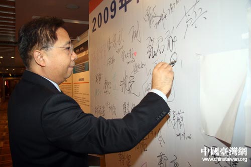 2009年兩岸互聯網發展論壇今天在北京開幕,圖為參加論壇的嘉賓在簽名墻上簽名。(中國臺灣網 邵磌 攝)