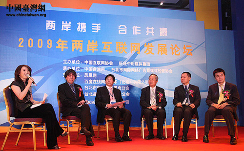 2009年兩岸互聯網發展論壇今天在北京開幕,來自海峽兩岸的互聯網行業精英,回顧了兩岸互聯網發展歷程,并就產業發展現狀及未來發展方向進行了深入探討。圖為嘉賓互動討論:兩岸攜手 合作共贏(中國臺灣網 邵磌 攝)