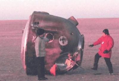 圖:神舟一號飛船在內蒙古中部地區成功著陸