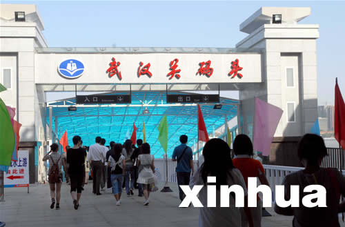 5月3日拍攝的武漢關新輪渡碼頭。“五一”期間,武漢關新輪渡碼頭投入使用,過江客運十分繁忙。武漢關輪渡碼頭擴建工程歷時約半年,大大增強了碼頭的抗浪能力,平緩的坡度更便于乘客上下。新華社發