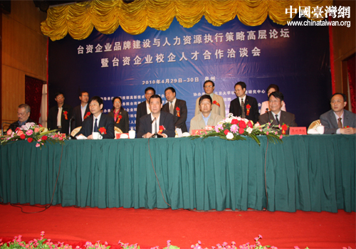本次舉辦的臺(tái)資企業(yè)校企人力資源合作簽約儀式旨在促進(jìn)臺(tái)資企業(yè)與校企人力資源合作,進(jìn)一步建立產(chǎn)學(xué)研與產(chǎn)業(yè)技術(shù)創(chuàng)新戰(zhàn)略聯(lián)盟等技術(shù)聯(lián)盟。(中國(guó)臺(tái)灣網(wǎng) 記者 胡珊珊) |