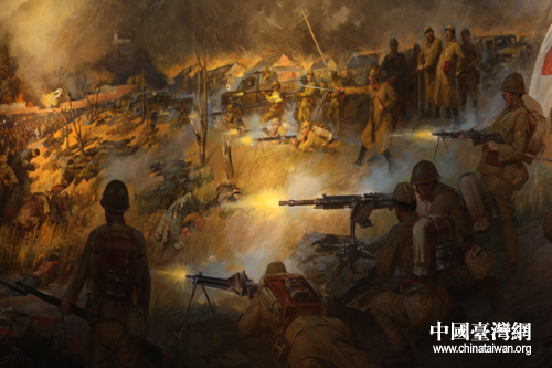 藝術(shù)家創(chuàng)作的巨幅油畫《南京大屠殺·1937·燕子磯》局部。