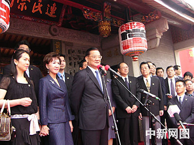 連戰在講話最后表示,雖然第一次來,相信以后還有機會重返祖籍、原鄉來向連家祖先和鄉親父老、親朋好友、兄弟姐妹們問候。