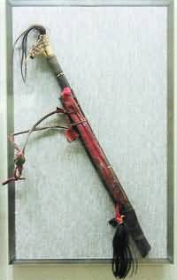 臺灣原住民的獵首刀具,刀上縛著被獵頭者的頭發。