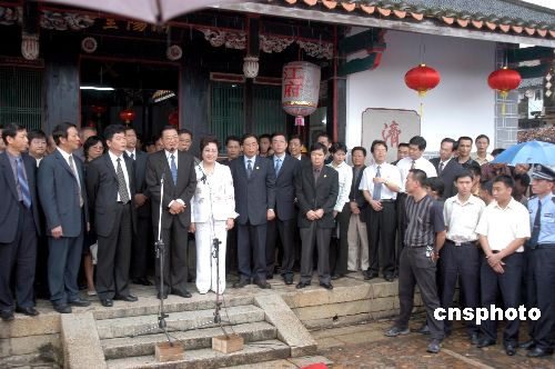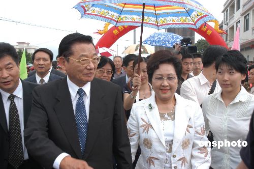江丙坤于本月十七日抵達福建,先后出席了第八屆海峽兩岸經貿交易會、第三屆福建商品交易會,并參觀了武夷山、廈門。今日上午,江丙坤偕夫人陳美惠等一行七人踏上了尋根之路。