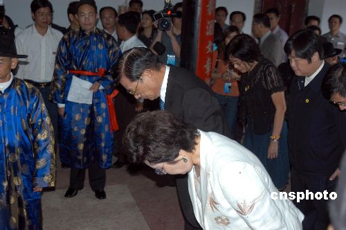 五月二十一日上午,中國國民黨副主席江丙坤回到福建漳州平和縣大溪鎮江寨村尋根祭祖。十時五十分,江丙坤夫婦走進了江氏祖祠“濟陽堂”,早已等候在那里的兩位年輕宗族按古禮捧上甜茶,表示對貴客的歡迎。 作者:林國瑞