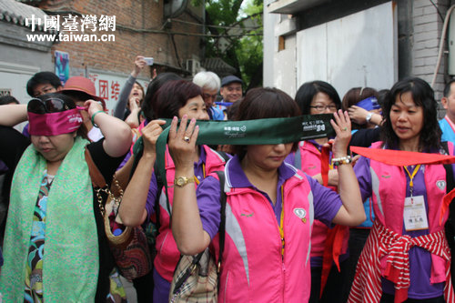 臺灣參訪團成員蒙上眼睛準備開始體驗。(中國臺灣網 郭瑩瑩 攝)