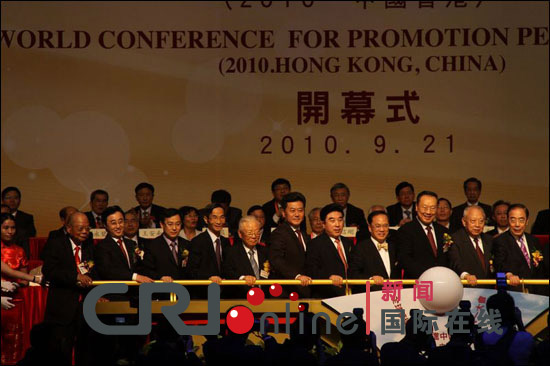 香港特區(qū)行政長官曾蔭權在大會發(fā)言中表示,香港回歸祖國13年來,已經(jīng)用無數(shù)事實向世界證明了“一國兩制”是妥善處理和解決歷史遺留問題的良方妙策。他相信,香港順利回歸的成功經(jīng)驗,也能為妥善解決臺灣問題提供實踐的范例。
