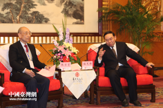 梅克保首先對(duì)張京育一行在清明節(jié)前夕回湘參加祭拜炎帝表示歡迎,并對(duì)他們?cè)?010年8月湖南臺(tái)灣周時(shí)多方面的關(guān)切和支持表示感謝。