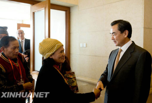 12月22日,王毅與臺灣少數民族代表人士訪問團成員握手。新華社記者 金良快 攝