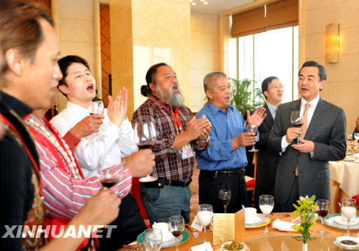 當日,中共中央臺辦、國務院臺辦主任王毅會見并宴請來北京出席“臺灣少數民族歷史文化展”的臺灣少數民族代表人士訪問團。新華社記者 金良快 攝