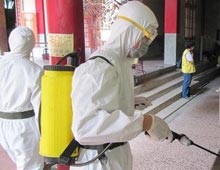 臺灣大批災民和軍隊聚集的災區,陸續傳出甲型H1N1流感疫情。在屏東、高雄協助救災的部隊如臨大敵,絲毫不敢懈怠,不管是地方的鄉公所救災指揮中心,或是災民暫時安置的寺廟、學校等,均加強消毒工作。